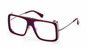 Armação larga e quadrada com um perfil sofisticado. A armação em acetato e metal é realçada pelas icónicas hastes tubulares inspiradas no design de Eileen Gray, oferecendo um estilo elegante e distinto, típico da estética Max Mara.