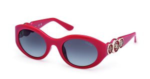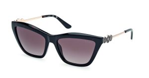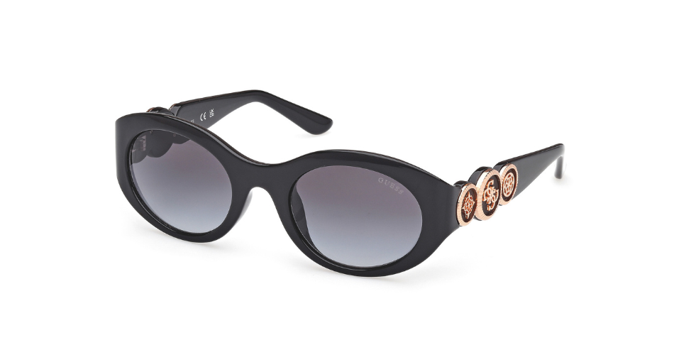 Armação estilo gatinho com a parte frontal oversized em acetato sólido define uma alma moderna. As sofisticadas hastes de metal expressam a herança incomparável da marca. O design apresenta elementos arredondados que reproduzem o logótipo 4G com as icónicas peónias da marca, definindo a identidade GUESS com detalhes especiais.