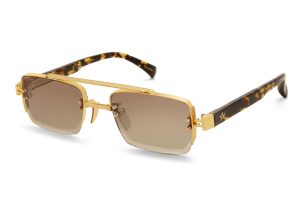 Fabricadas em acetato italiano de base biológica, as armações resistem a deformações e curvaturas, enquanto os detalhes em ouro de 18 quilates, a folha de ouro e o fio central personalizado combinam uma precisão artesanal com uma estética refinada e um acabamento manual. As dobradiças Comotech de sete pinos e os parafusos revestidos a borracha garantem um desempenho suave e duradouro. Para completar a experiência, as lentes de poliamida de nylon possuem um revestimento antirreflexo Gold ET na parte traseira, proporcionando nitidez, redução do brilho e maior durabilidade; perfeitas para os dias ensolarados de verão.