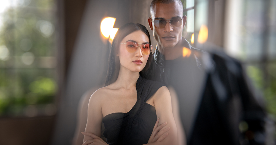 moderno em óculos sem aro. A fusão entre o virtuosismo artesanal e a atenção obsessiva aos detalhes resulta em óculos de sol extremamente leves, concebidos para transmitir uma elegância minimalista, uma presença marcante e uma personalidade marcante.