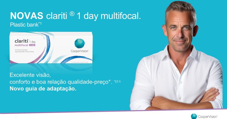 As novas clariti® 1 day multifocal baseiam-se na reputação já estabelecida da marca como uma escolha popular entre os profissionais de cuidados da visão para pacientes com presbiopia que necessitam de uma visão nítida⁵ e bom conforto⁶ a um excelente valor⁷. Agora, ao incorporar as mais recentes inovações da CooperVision, a lente melhorada eleva ainda mais o desempenho da clariti® 1 day multifocal e está disponível em todos os mercados EMEA.