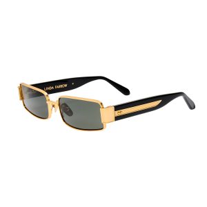 apresentam hastes em acetato com uma assinatura metálica em forma de favo de mel. Os óculos de sol Kaia oferecem um formato retangular estreito e glamoroso, em cores da estação, como o branco puro com o ouro branco e o vermelho com o ouro amarelo. Mantendo a herança e a assinatura arquivística de Linda Farrow, os óculos de sol Nathan são um belo exemplo de um formato retangular intemporal para todo o ano, criados em cores clássicas e ricas, como o casco de tartaruga escuro, o preto e o elegante caqui.