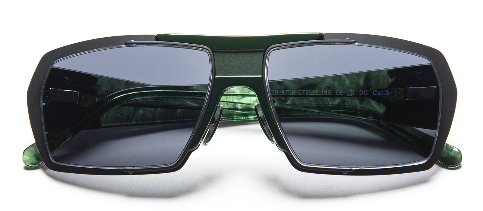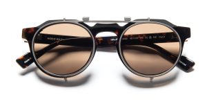 Esta linha reinterpreta óculos de sol com clipe. É composto por dois modelos em acetato, que se distinguem pelo clipe solar Flip-Up em alumínio, disponível em preto ou cinzento consoante o modelo. O clipe foi especialmente desenhado para se adaptar perfeitamente às armações, remodelando o seu formato para o transformar num acessório original, moderno e fácil de usar. Totalmente amovível e articulado, está equipado com lentes polarizadas para as condições de brilho mais intensos. O estilo original das armações mistura elementos retro com design contemporâneo, utilizando referências estilísticas do universo gráfico característico de Hideo Kojima: motivos estilizados de selva, efeito camuflado, azul cristal e preto escovado. Todas as hastes das armações são marcadas com um design exclusivo da Kojima Productions, acrescentando um toque único e diferenciado a cada armação.