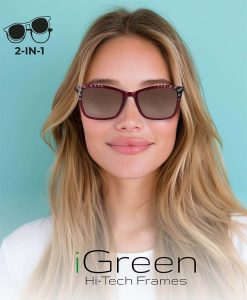 Os novos modelos para esta estação primavera-verão, apresentados pela iGreen, marca da Thema-Optical, incluem versões com clip-ons para transformar cada armação num óculos de sol colorido, esplêndido, moderno e chamativo, adequado a qualquer situação.