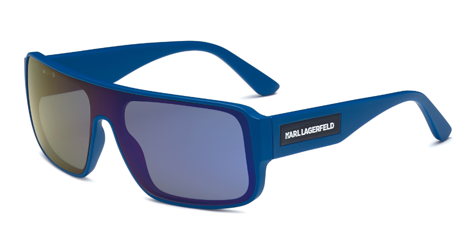 O modelo tipo máscara (KL6129S), feito em plástico injetado, está disponível em novas cores com acabamento fosco e foi projetado pensando no uso universal. Oferece um estilo alegre e esportivo enfatizado pelas hastes largas com uma etiqueta de borracha que contrasta com o logotipo KARL LAGERFELD. Disponível na cor azul claro fosco; Preto mate; cinza fosco e cáqui fosco.