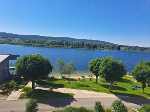 hospedamos, localizado em frente ao lago de mesmo nome e num cenário idílico. Após momentos de lazer à tarde, ao anoitecer, realizou-se um jantar no restaurante do hotel com a presença de parte da equipa da firma francesa, juntamente com todo o grupo de jornalistas internacionais que assistiram ao press day. Foi um momento ideal para conhecer parte da equipa Morel, bem como colegas jornalistas, num ambiente descontraído e agradável.
