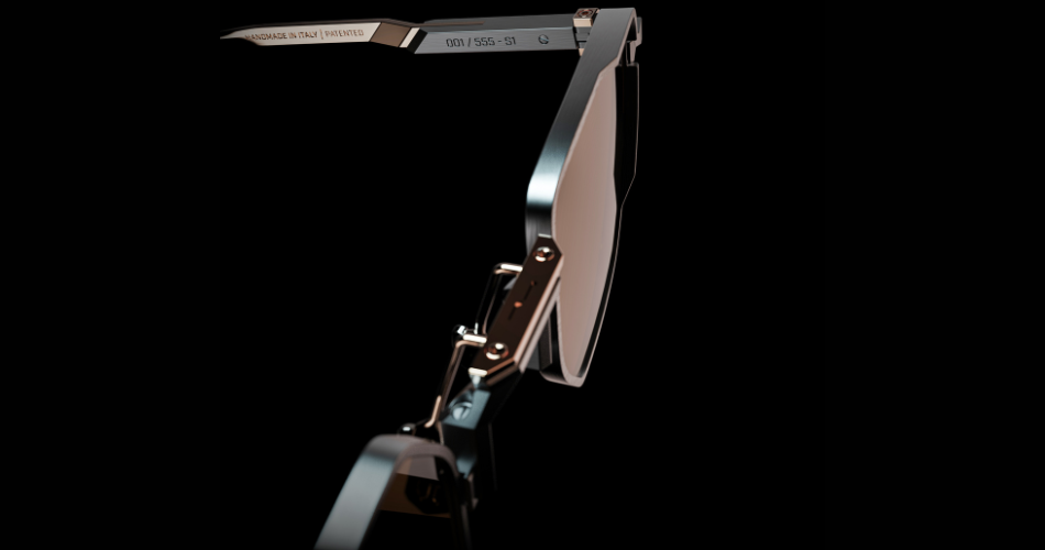 Para ambos os modelos, o aro de titânio possui uma seção elevada de 4 mm que funciona como uma espécie de “pára-choques” quando os óculos estão fechados, para que a haste se encaixe perfeitamente na parte elevada. Além disso, as hastes de cada modelo apresentam duas peças, uma que é uma caixa flexível de titânio usinada em CNC com acabamento escovado e uma extremidade em aço. As duas partes são unidas com parafusos torx de última geração.