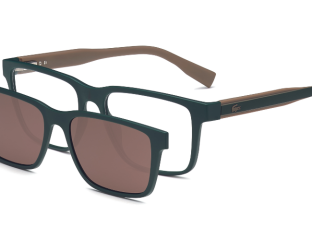 A Lacoste apresenta os seus primeiros óculos com clips magnéticos, armação desportiva que faz parte da nova linha Croco da coleção outono-inverno 2023. Este novo modelo, confortável e leve, foi confeccionado com resina vegetal e apresenta