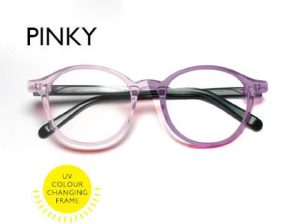 Esses óculos de sol mudam de cor quando você fica ao sol. De âmbar claro na parte superior e rosa claro na parte inferior, a luz solar muda a cor da armação de cinza cristal escuro a rosa choque.