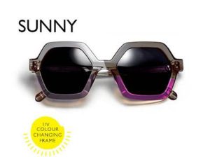 Esses óculos de sol mudam de cor quando você sai ao sol. Do âmbar claro na parte superior e rosa claro na parte inferior, a luz do sol muda a armação do cinza cristal escuro para o rosa choque Estes óculos de sol com acabamento fosco são feitos do mesmo material que brilha no escuro. Exposta à luz, como uma lâmpada ou luz solar, esta armação brilha em verde neon no escuro.
