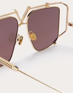 Os anéis estruturais que sustentam as lentes na parte superior e nas laterais completam o design e são embelezados com as icónicos tachas da Valentino. Outros pinos 3D podem ser encontrados nas hastes elegantemente esculpidas e nas pontas das hastes. Feito no Japão para artesanato e qualidade incomparáveis